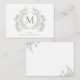Cartão de Nota para o Monograma Floral Verde de Sage Botânica Clássica