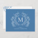 Cartão de Nota Clássico Azul Floral Crest Monograma