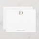 Cartão de Nota de Monograma Elegante Preto e Dourado Script