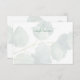 Cartões de nota elegantes personalizados com aquarela eucalipto e monogramas de script de caligrafia e nome em verde. O exemplo é mostrado no tamanho de 3,5x5 pol em papel branco de formato de ogiva—outros tamanhos e tipos de papel estão disponíveis na página de pedidos. ALTERAÇÕES: O estilo, cor, tamanho e posicionamento da fonte de texto podem ser alterados clicando em PERSONALIZAR AINDA MAIS na seção PERSONALIZAR para uma aparência personalizada. ASSISTÊNCIA: para obter ajuda com a modificação ou personalização do design, alteração de cor, transferência do design para outro produto ou você gostaria de coordenar itens, entre em contato com o designer ANTES DE ENCOMENDAR através da guia MENSAGEM de bate-papo Zazzle ou envie um email para makeitaboutyoustore@gmail.com.
