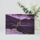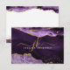 Cartão de nota monograma moderno, elegante, com geode agata roxo e mármore com sotaques dourados e personalizado com iniciais monograma manuscrito chic e nome na frente. O exemplo é mostrado no tamanho de 3,5x5 pol em papel branco de formato de ogiva—outros tamanhos e tipos de papel estão disponíveis na página de pedidos. ASSISTÊNCIA: para obter ajuda com a modificação ou personalização do design, transferir o design para outro produto ou você gostaria de coordenar itens, entre em contato com o designer ANTES DE ENCOMENDAR através da guia MENSAGEM de Bate-papo Zazzle ou envie um email para makeitaboutyoustore@gmail.com.
