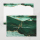 Cartão de nota monograma moderno e elegante com gode verde agate e mármore com sotaques dourados e personalizado com iniciais monograma manuscrito chic e nome na frente. O exemplo é mostrado no tamanho de 3,5x5 pol em papel branco de formato de ogiva—outros tamanhos e tipos de papel estão disponíveis na página de pedidos. ASSISTÊNCIA: para obter ajuda com a modificação ou personalização do design, transferir o design para outro produto ou você gostaria de coordenar itens, entre em contato com o designer ANTES DE ENCOMENDAR através da guia MENSAGEM de Bate-papo Zazzle ou envie um email para makeitaboutyoustore@gmail.com.