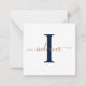 Cartão De Notas Monograma Moderno, Letra Azul, Marinho Dourado, Co