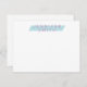 Este design de papelaria moderno apresenta um retângulo azul claro angulado atrás da personalização. O primeiro e o sobrenome estão empilhados uns sobre os outros e são de cor roxa-rosa. Uma carta perfeita para a moça moderna ou adolescente.