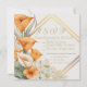 Este RSVP Orange e Ivory Calla Lily, placa de nota projetada moderna, tem uma ampla estrutura geométrica de ouro e belas bordas de flores e botânicas em ouro. Altere o texto para atender às suas necessidades. A suíte inteira está disponível na nossa Coleção Florais de Primavera e Verão.