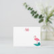 Cartão de Nota Flamingo Rosa Quente de Folha Tropical na moda Monograma
