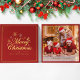Cartão De Notas Natal 1 Foto Vermelho e Dourado Script