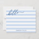 Cartões de nota personalizados com linhas em azul claro e branco. Olá está escrito no canto superior esquerdo em um script azul. Adicione seu nome na parte inferior.