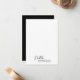 Cartões modernos de notas em preto e branco com um design simples e mínimo personalizado com seu nome em um roteiro elegante e fonte moderna de sans serif.