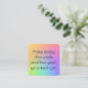 Colorido "Faça de hoje, desta semana e deste ano o melhor até agora." Agradecimento encorajador em uma fonte moderna e fundo degradê de arco-íris são destaques neste lindo cartãozinho de feriado de 6,35 cm x 6,35 cm. O verso é de cor pérola com "Feliz Ano Novo", ano e nome elegante. Ideais cartões de férias de inverno para adolescentes e universitários, cartões de inclusão para presentes de última hora, cartões para trabalho ou familiares e amigos. É fácil alterar ou remover qualquer texto usando o modelo fornecido. OBSERVAÇÃO: são pequenos demais para enviar pelo correio nos EUA, o tamanho mínimo de envelope aceito pelo USPS é de 8,89 cm x 12,7 cm. Feito e Impresso nos EUA.