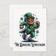 Uma ilustração digital de um design de camiseta para um leprechaun dançante.