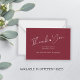 Chá de panela vermelho escuro moderno moderno de tendências, obrigado a anotar cartão com um roteiro de caligrafia com caligrafia com um pequeno coração. ++++++++++ Personalize-o com o seu texto e nome! +++++++++ Observe que a cor de fundo pode ser alterada para corresponder ao seu esquema de cor de casamento. Se for confortável, você pode alterá-lo depois de selecionar a opção PERSONALIZAR TI. ++++++++ Se precisar de ajuda, envie uma mensagem ao designer!