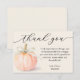 Um cute abóbora, amarrada com uma elegante fita de cetim marfim, destaca esses cartões de agradecimento planos para chá de bebê neutros em relação ao gênero, apresentando sua mensagem pessoal de agradecimento impressa ou deixe em branco para escrever à mão sua nota. (Disponíveis também em rosa e azul.) Itens COMBINADOS em nossa coleção.