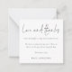 NOTE se você estiver nos EUA, o quadrado de 2,5 pol é menor que o requisito mínimo de postagem dos EUA, portanto escolha o tamanho quadrado de 5,25 pol x 5,25 pol se você estiver planejando enviá-los (Observe que os cartões quadrados podem custar mais pelo correio do que os retangulares). Roteiro Foto de Amor de Casamento e Obrigados. Um quadrado TINY MINI tamanho 2,5" para este design de tipografia minimalista com um script de estilo de letra de na moda definido para Amor e Obrigados. No verso, substitua a imagem por sua favorita do dia como guardiã para seus convidados. Personalize facilmente o resto do texto com sua mensagem e nomes.
