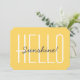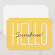 Olá Sunshine! Personalize as cores ou mantenha como criado. Citação Olá Sunshine adicionada ao fundo dourado alegre e na moda com caligrafia branca e azul meia-noite. O verso do cartão apresenta um branco crocante e foi deixado em branco para sua mensagem personalizada. Maneira perfeita de adicionar um pouco de sol ao dia de alguém!