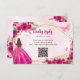 Placa de Resposta RSVP de Código QR de Aniversário de Quinceañera, Princesa Tiara Crown Quinceañera Aniversário da Magenta Dourada Rosa Brilhante