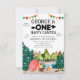 Convite para primeiros aniversarios de acampamentos Felizes da Floresta de Montanha Florestal Feliz, Cute ONE