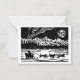 Impressão de lino de Natal de Papais noeis a andar de trenó com cães no Ártico à noite com Luzes Nortes e um estrelado acima, e "Feliz Natal" em norueguês escrito na lua.