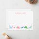 A papelaria personalizada préppy de dinossauro apresenta seis silhuetas alinhadas na parte inferior deste cartão de nota plano. Personalize com seu nome no topo. Compre toda a coleção coordenada para todas as suas necessidades de festa de dinossauro.