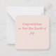 Um Cartão de Parabéns para Pais de Primeira Viagem com o texto " Parabéns pelo seu Novo Pacotinho de Alegria !"