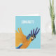 Este cartão de boas-vindas foi concebido para alguém que celebra uma conquista ou um marco. Ele apresenta uma arara azul e amarela vibrante em voo de médio, com suas asas espalhadas por toda parte. A palavra "PARABÉNS" aparece de forma destacada no topo, em letras brancas e maiúsculas. O fundo é um simples, azul brilhante. O trabalho de arte evoca sentimentos de entusiasmo, triunfo e jubilação tropical. A pose dinâmica da arara sugere energia e sucesso. Este trabalho de arte é abrangido pelas categorias de Celebração/Parabéns e Animais Tropicais/Exóticos.