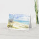 Capa de mar na placa de praia. Perfeito para uma nota rápida, cartão de saudação pessoal. Linda cena de aquarela do oceano, costa e praia arenosa.