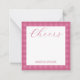 Personalized stationery enclosure notecard with a pink gingham pattern in notes of dark deep and vibrant rose pink with the sentimental words "Cheers". Tuck it into a flower bouquet or meaningful gift. These minimal flower shop inspired enclosure cards bring a retro kitchen vibe to your most thoughtful moments.