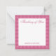 Personalized stationery enclosure notecard with a pink gingham pattern in notes of dark deep and vibrant rose pink with the sentimental words "Thinking of You". Tuck it into a flower bouquet or meaningful gift. These minimal flower shop inspired enclosure cards bring a retro kitchen vibe to your most thoughtful moments.