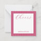 Personalized stationery enclosure notecard with a pink pin stripe pattern in notes of dark deep and vibrant rose pink and bubble gum pink with the sentimental words "Cheers". Tuck it into a flower bouquet or meaningful gift. These minimal flower shop inspired enclosure cards bring a retro kitchen vibe to your most thoughtful moments.