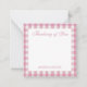 Personalized stationery enclosure notecard with a pink gingham pattern in notes of dark deep and vibrant rose pink bubble gum and white with the sentimental words "Thinking of You". Tuck it into a flower bouquet or meaningful gift. These minimal flower shop inspired enclosure cards bring a retro kitchen vibe to your most thoughtful moments.