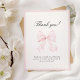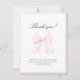 Sweet baby shower Thank You Note Card that features an elegant pink bow.
