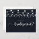 Esta corda rústica ilumina o cartão de nota de proposta da dama de honra é perfeito para um casamento moderno. O design apresenta belas luzes de cordas pintadas manualmente em um fundo azul escuro. Mude a redação e use estas cartas para pedir a todos os membros do seu partido noivo; madrinha de casamento, matrona de honra, damas de honra, dama de honra júnior, florista, homem melhor, padrinhos de casamento e muito mais!