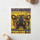 Pá de cor criativa com realces azuis e amarelos e cor-de-rosa contra um fundo amarelo brilhante. Pequenas estrelas multicoloridas e banda de cor neste impressão.