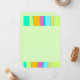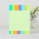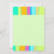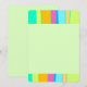 Este cartão de nota plana mostra um design legal composto por cores vibrantes faixas orgânicas verticais para cima e para baixo em azul, rosa, laranja, azul, verde limão e turquesa, enquanto um espaço verde claro e claro e claro, editável no meio. O verso também é este verde.