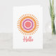 Este design apresenta uma luz colorida Retro Sunburst em laranja e violeta com uma fonte branca correspondente que diz: Olá. Este cartão de nota dobrado é ideal para cumprimentar amigos e familiares ou para enviar uma nota curta para manter contato. Ele está disponível como uma placa padrão de 5 polegadas x 7 polegadas ou em um tamanho menor de 4 polegadas x 5,6 polegadas e pode ser aplicado em orientações horizontais ou verticais. Esse design pode ser dimensionado para menor quantidade para personalização e personalização adicionais. A dentro desta placa é vazio deixada, por isso há muito espaço para escrever uma nota detalhada, ou para personalizá-la ainda mais de acordo com as suas necessidades. As explosões solares são um design icônico que transmite energia positiva e um sentimento de renovação. Este design de explosão solar também está disponível em variações de cores adicionais e produtos adicionais, visite nossa loja para ver detalhes adicionais. Também estão disponíveis envelopes brancos opcionais.