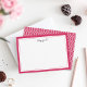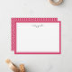 Nossas cartas chic personalizadas de papelaria plana apresentam uma borda rosa brilhante de framboesa com seu nome ou monograma agarrando o topo em carvões cinza modernos de carvões. O lado inverso revela um padrão de latência moderno em cor-de-rosa e branco vibrantes.