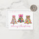 This cute tiny note card features three preppy Christmas trees in girly shades of pink and green with fun bows. Personalize the back with your choice of special holiday message or name.