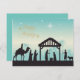 Cena tradicional do presépio de Natal comemorativo; tipografia dourada "FELIZ NATAL".