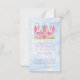 Cartões de nota de princesa com lindo castelo em aquarela em um fundo de nuvem em aquarela azul. A mensagem pode ser alterada para o que você preferir.