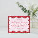 Elevem as vossas propostas de damas de honra com o nosso cartão vermelho-chic e rosa "Will You Be My Bridesmaid?". Projetada para a noiva moderna, esta carta elegante combina estilo de moda com sentimento sincero, fazer a maneira perfeita de pedir aos seus melhores amigos para ficarem ao vosso lado no vosso dia especial. A escritura sofisticada e o encantador design deixarão uma impressão duradoura, assegurando que suas propostas de madrinha sejam tão memoráveis quanto o próprio dia do casamento. Ideal para noivas que apreciam um pouco de elegância voga em todos os detalhes do seu plano de casamento.