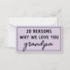 Razões pelas quais amamos você Vô Lindinho Cartão de Nota!