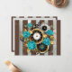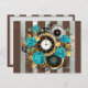 Cartão De Notas Relógio e Rosas de Turquesa em Striping