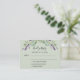 Um fundo verde, texto preto. Decorado com flores de lavanda e verde de eucalipto. Personalize e adicione uma resposta por data. Voltar: adicione o URL do seu local de casamento ao código QR e um texto.