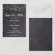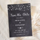 Reserve a Data! Anuncie o seu casamento a amigos e família com estes cartões salve a data rústicos de 'chalkboard' e 'strings light'. Personalizar com nomes, data do casamento, localização. Esse casamento exclusivo, salvando as cartas, vai causar uma impressão duradoura, seus hóspedes vão se certificar de salvar a data! COPYRIGHT © 2020 Judy Burrows, Black Dog Art - Todos Os Direitos Reservados. Luzes De String Rustic Slate Casamento Salvar O Cartão De Nota De Data