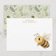 This sage green nursery note card features a cute bee surrounded by wildflowers on a soft natural background. The calm and elegant design makes it a perfect personalized stationery piece.
