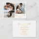 fotos de freepik.com elegante caligrafia dourada colagem de 3 fotos guarde a data Cartão, personalizado. duas cartas laterais, no outro lado, informações de casamento, personalizadas.