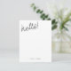 Cartão de nota minimalista com um texto casual manuscrito no topo que diz "olá!" Personalize este produto adicionando seu nome na parte inferior. Papel de carta moderno para mulheres na moda.