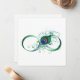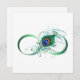 O símbolo do infinito com uma pena brilhante, verde, de pavão artístico sobre um fundo branco. Tatuagem.