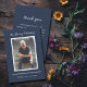 Um simples obrigado de memorial azul e branco seu cartão de nota simples apresenta "In Loving Memory" com a foto, o nome e as datas de morte por nascimento do seu ente querido na frente e o obrigado que você envia no verso. CORRESPONDENTE a itens na nossa coleção.