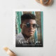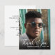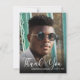 Dobradiças de agradecimento de dois lados apresentam seu nome, ano de formatura e as palavras Obrigado em letras brancas elegantes sobre sua foto na frente. Há muito espaço no verso para escrever uma mensagem manuscrita ou compor uma mensagem para ser impressa. ITENS COORDENADOS em nossa coleção.